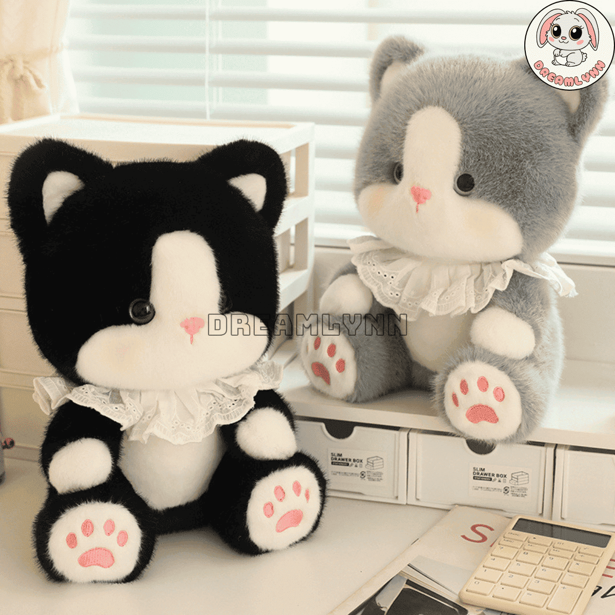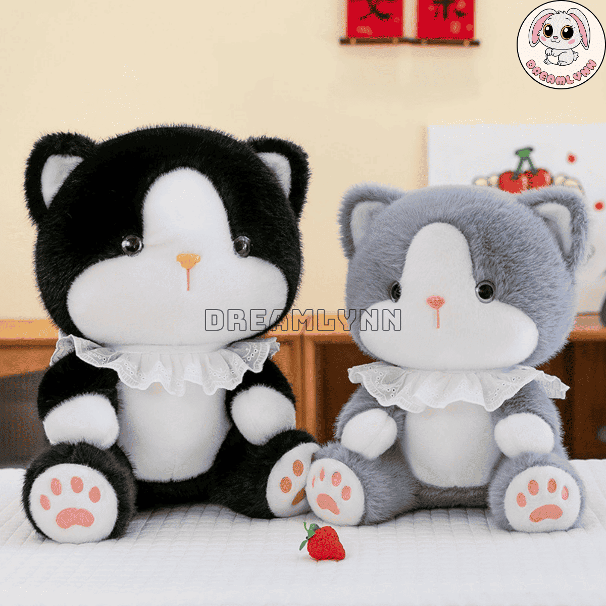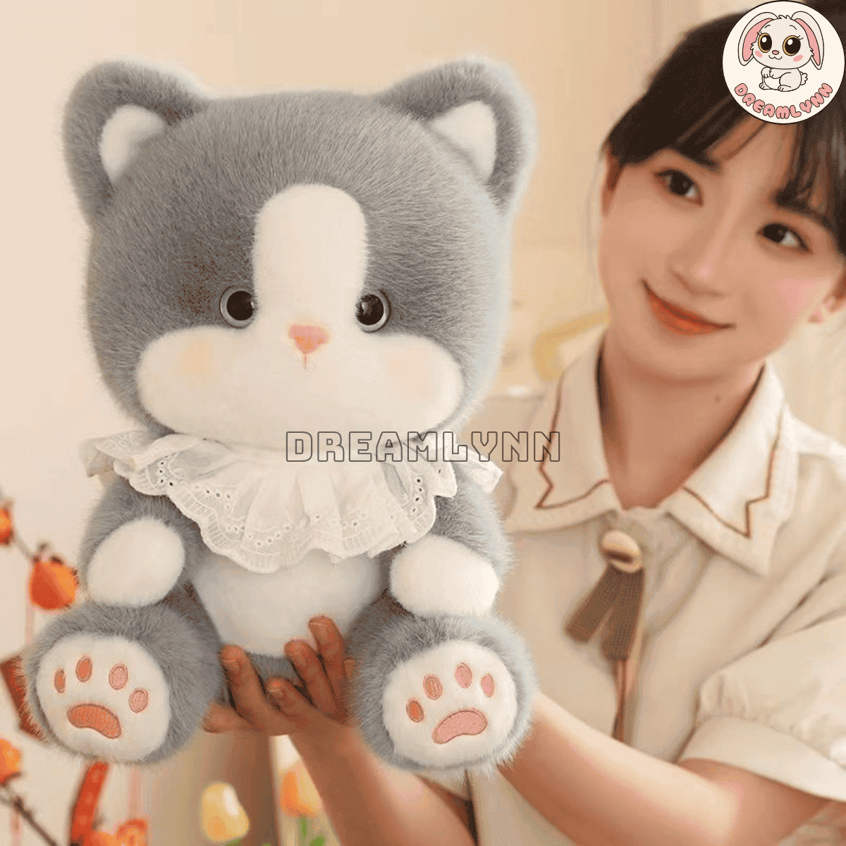 gấu bông mèo xám: Hình dáng mèo búp bê cực kỳ dễ thương, phù hợp với mọi lứa tuổi.